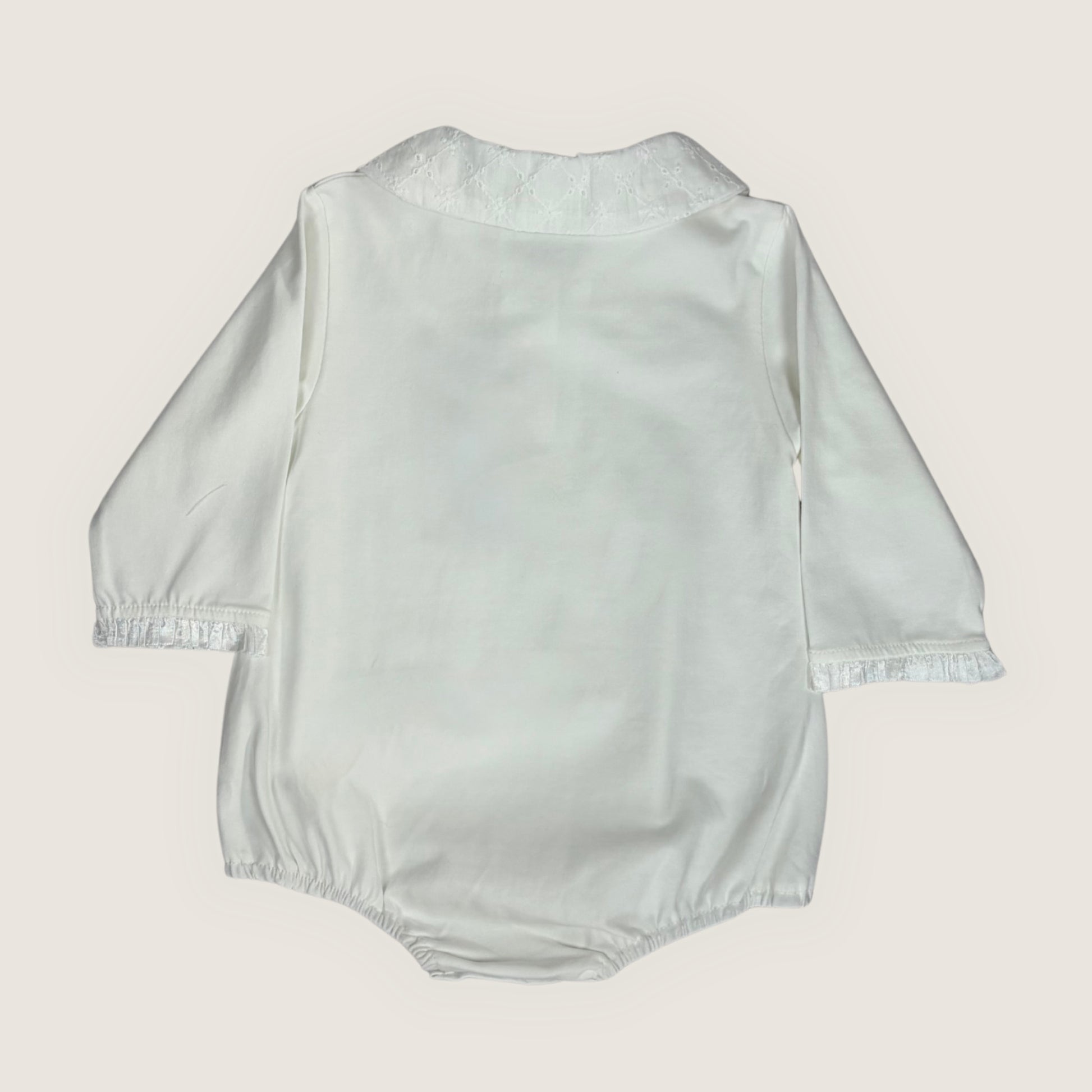 CHARLIE-bodyen er blød, åndbar og klar til alt – fra morgenkaos til middagslur. Et klassisk design med fine detaljer, der gør den lige så pæn som praktisk.